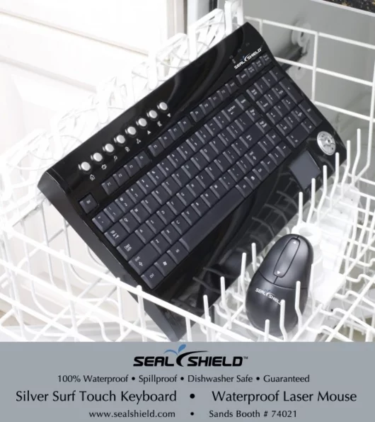 Seal Shield's range of keyboards and mice are waterproof, dishwasher safe and contain antimicrobial properties to resist the spread of harmful germs and bacteria, which means a cleaner, healthier work and play environment.