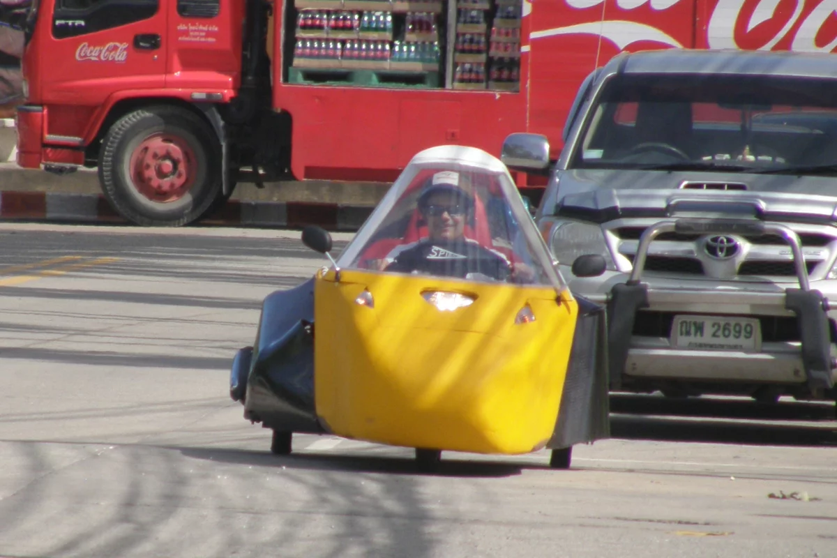 Driving the Spira was more fun than I'd imagined, due partly to its agility and roadholding, and partly to its celebrity status on the roads. If it looks different to you, imagine what it looks like if you only know a road system with bicycles and motorcycles and more recently cars, to see something like this coming down the road painted bright yellow. Spontaneous cheering from the locals, even before I'd reached them was not uncommon. That aspect, and the curiosity factor is currently a two-edged sword because it is such a novelty, that cars drive in very close proximity so the driver and or passengers can get a closer look, and take pictures and video. Stopping drew a crowd, I was never short of anyone to talk to about it.