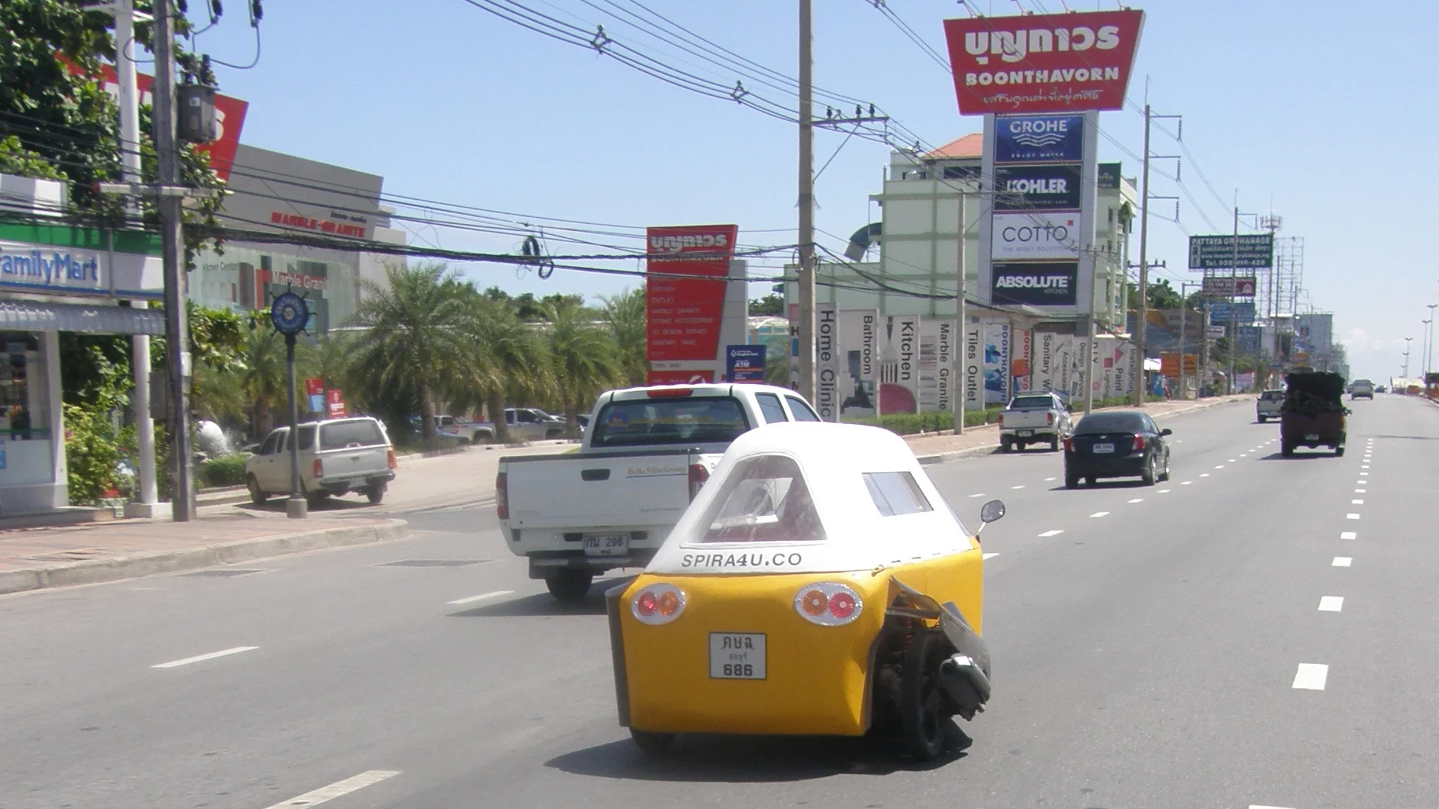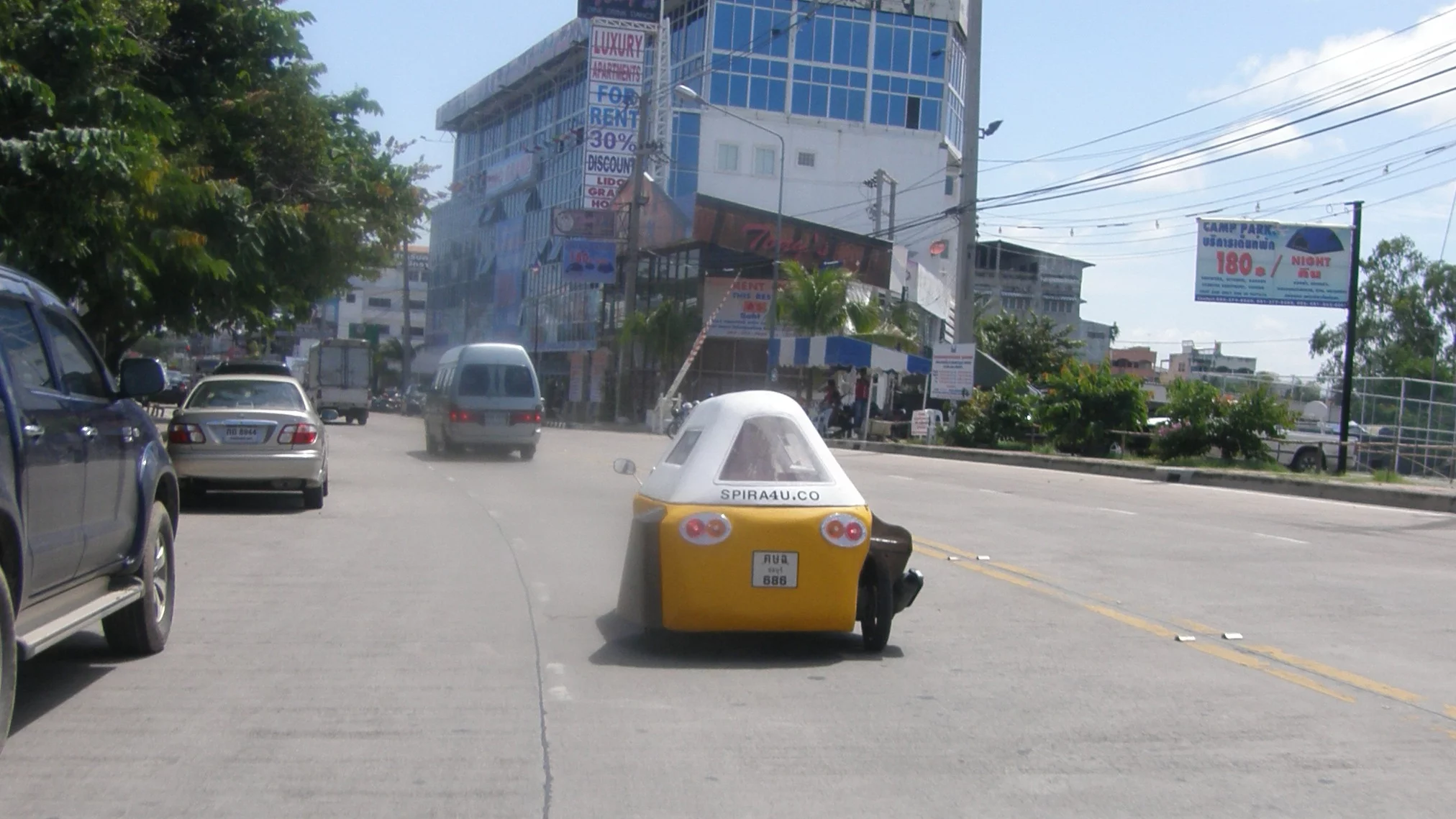 The Spira three-wheeler is a unique vehicle. It's one of the finalists in the Automotive X-Prize but its frugal fuel consumption and low emissions are only part of the vision of making it a car for the people. The Spira starts with a scooter, uses everything but the frame, and all those parts bolt into a foam composite tub to create a lightweight (137 kg) three-wheeled two-seater with immeasurably greater crash protection for the occupants. Gizmag visited the Spira's home in Thailand to drive what inventor Lon Ballard hopes will become a machine for the people, and came away mightily impressed.