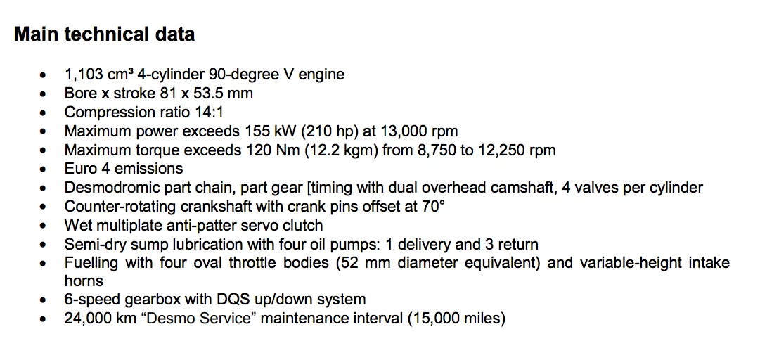 Although slightly larger at 1,103 cm3, the Stradale's engine configuration is closer to the ultra-powerful Desmosedici MotoGP motor than we could have imagined.
