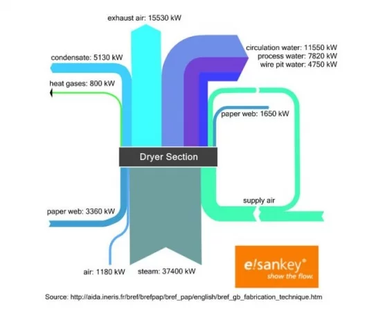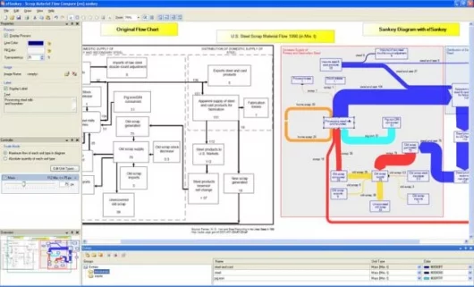 February 16, 2007 e!Sankey is a new, US$100 windows-based software for engineers, environmental consultants and scientists that creates good-looking, pain-free process diagrams and flow charts for presentations, scientific papers and internal communications. Sankey diagrams are graphic representations of technical or economical interrelationships. They help viewers visualize and understand the connections between individual processes, for example, material, cost or energy flows. The relative value of each material flow is represented by the width of the connecting arrows within the Sankey diagram. Putting the tools into the hands of the people who have the knowledge rather than having a graphic artist in the process allows users the opportunity to visualize a wide range of processes, such as production costs, energy losses of a particular machine or material flows within specific economic sectors.