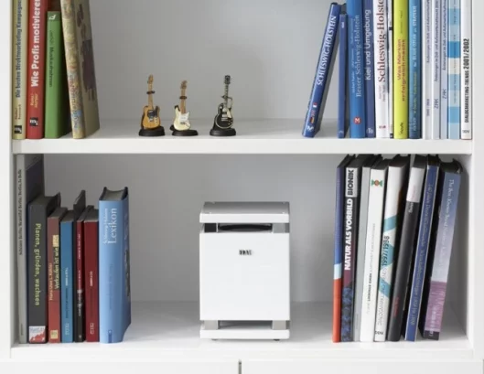 The system offers a choice of satellite speakers, either the pint sized ELAC 301’s which pump out 50/70W, or even smaller Starlets, which provide 40/60W of power. Designed to take up the minimum amount of space on the desk, sideboard, windowsill or shelf in the office, study or bedroom the system is optimized for music reproduction even at very close range. When it hits store the system will be available in high-gloss black or white.