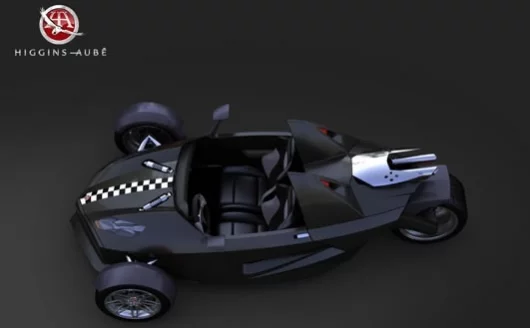 January 7, 2009 Designers from The Creative Unit have spent time working with Bombardier, so it's no coincidence that the work they've done on the Higgins-Aube ENERGYA looks a lot like a two-seater version of a Can-Am Spyder. But the purpose of this Canadian concept is quite different; since three wheelers are registered as motorcycles in many states, and motorcycles have fewer regulatory restrictions imposed on them, the ENERGYA is designed to bring racecar levels of ultra-low weight, big power and massive grip to the road that would be impossible if it was registered as a car. As such, it's got a much wider front wheelbase, enclosed seating, roll protection and double the horsepower of the Can-Am roadster.