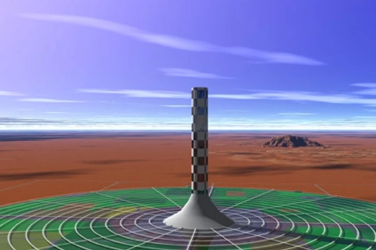 The first 200MW power station in the 'Solar Mission' project will produce enough electricity to power 200,000 households while reducing greenhouse CO2 emissions by as much as 750,000 tonnes.The thermal power station generates electricity when turbines are driven by heat rising from the transparent "collector" surrounding the tower.