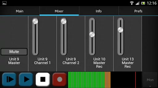 The mixer page of USB Audio Recorder PRO (on smartphone)