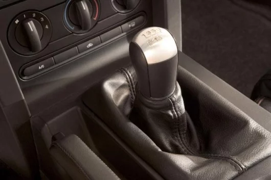 Helping to put the power of the GT500's supercharged V-8 to the pavement is a T-56 six-speed manual gearbox. The evenly spaced gears mean less stirring is needed to find the "sweet spot" in keeping the revs "on cam" for power to pass, while at the same time making the most of the engine's broad torque curve. The heavy-duty transmission has proven itself a willing companion to V-8 power in Mustangs in both road and track environments, including the 2000 SVT Mustang Cobra R, 2004 SVT Mustang Cobra and the new race-winning Ford Racing Mustang FR500C.