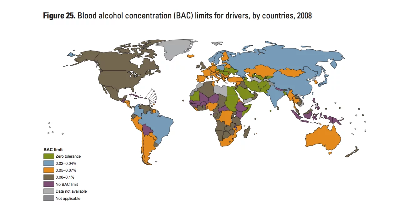 In many countries there is no policing of the drink driving laws, and remarkably, there are countries that still don't have any laws governing the use of alcohol at all. In Pakistan and Afghanistan, bus and truck drivers routinely smoke hash.