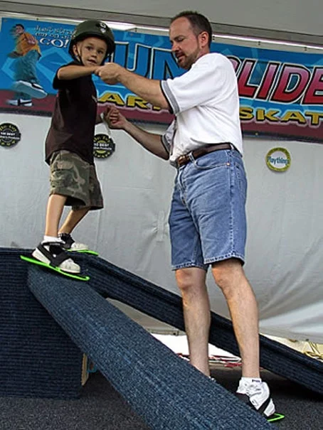 The FunSlides were demonstrated at the recent Gravity Games in Cleveland, OH, where kids glided around a giant carpet to practise their moves. The Gravity Games featured the best in skateboarding, BMX and Freestyle Motocross competitions.