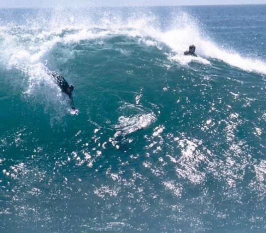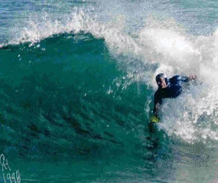 Designed to maximise speed in the water and improve your chances of getting on the wave without cramping your bodysurfing style, Wave Blades use a lightweight foam filled glove construction giving each finger control over the movement of the "board". Integrating the glove into the bodysurfing device also ensures that they can't come off as you paddle for a wave (or get dumped) and the foam padding acts to cushion the bumps as you slide down the face. Each pair of Wave Blades is hand-made in the US by Bob Davis, who first came up with the design in the summer of 1987 at Long Beach New York. Tired of being "left to eat alot of wakes" in the 8-10 ft waves, Davis was inspired to draw up plans for a body surfing aid that was easy to swim with, didn't get away from you and was able to hold a high line as well as delivering exceptional control and allowing you to "dolphin" into the wave.