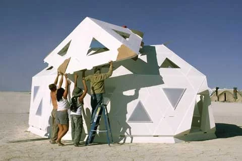 The Icosa shelter system utilises innovative design, commodity materials and fast, simple construction from pre-cut materials to create a cost-effective shelter solution for humanitarian and relief situations. Applying the geodesic principles pioneered by Buckminster Fuller, the Icosa system is capable of withstanding high-winds and a range of temperatures and a consumer version - "The Pod" - has now emerged in the US.Two commercial models are available: the 7m wide Deca Pod and the 3.5m Ico Pod, both of which follow the icosahedron design.