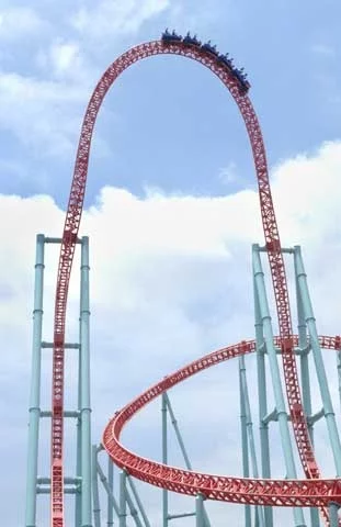 Launched in 2002 at Knott's Berry Farm, Buena Park, California, the Xcelerator can accommodate up to 40 passengers on its two trains, each expect to pull 4G's.