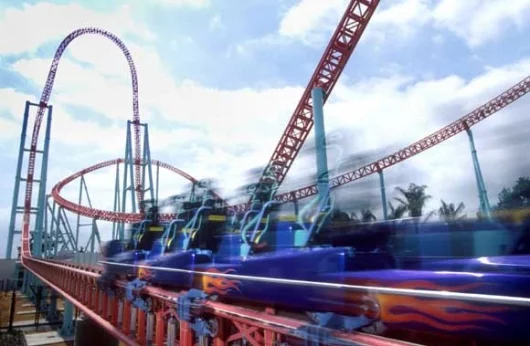The fast and furious roller-coaster covers 660 m in just over 1 minute, passing through two overbanked turns and a 60 metre ascent is followed by an immediate descent at a 90-degree angle before the magnetic brakes kick-in on the final run.