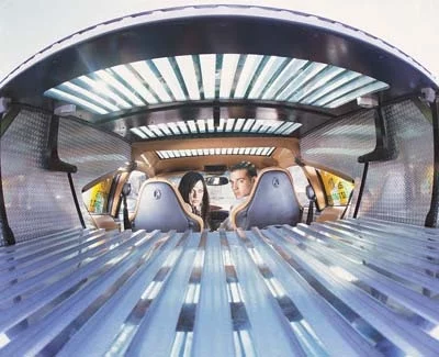 Saturday August 2, 2003Based on the Porsche 996 turbo, the Bedouin is the latest concept from Rinspeed Design, the Swiss company that introduced the Presto collapsible concept car in 2002. Described as an exercise in showcasing the untapped creative potential of multi-purpose vehicles, the all-wheel-drive Bedouin can automatically be transformed from a two-seater pick-up into a four-seater sports wagon in less than ten seconds.Premiering at the Geneva Motor Show this year, the Bedouin performs its transformation using two electric motors that drive jackscrews to lift the entire roof of the vehicle. The front part of the roof then folds and in effect becomes the tailgate window while the rear part of the roof turns into the cargo bed. The tailgate is also electrically powered and when lowered it extends the bed by another 45 centimetres and the entire process can be operated with a remote control.Powered by an environment-friendly twin-turbo engine running on natural gas - the fastest natural gas vehicle in the world according to Rinspeed - the four-valve Porsche engine produces 420 hp / 309 kW at 6,000 rpm and accelerates to 100 kmh in approximately 5.9 seconds. Top speed is mechanically limited to 250 kmh.Natural gas is an extremely clean-burning fuel that consists almost entirely of methane and contains almost no sulphur. Engines running on natural gas are also quieter than their conventional counterparts.The body is constructed from Pre-Preg composite - a state-of-the-art plastic is rarely used in automotive production that combines a low specific weight with high strength.Drivers can stay informed and passengers are entertained via the seven-inch colour LCD monitor that folds down from a recessed position in the roofliner. The Blaupunkt system displays the signal from the rearview camera for the driver or provides DVD viewing and gaming (using peripherals like Sony Playstation) for passengers.Other key aspects of the futuristic design include extensive use of a stainless-steel exhaust from Remus, 18-inch Continental SportContact 4x4-tires, progressive-rate Wandfluh steering, a height adjustable Eibach suspension system that enables the body of the Bedouin to sit 15 centimetres higher than that of the Porsche equivalent and custom-developed chrome-plated LED taillights that offer exceptionally fast reaction time.The interior retains much of its Porsche 996 heritage with custom-upholstery, laser-imprinted leather seats and a gearshift-lever grip made from solid crystal among the additions unique to the Bedouin.Swiss engineering company Esoro served as general contractor and Rinspeed also partnered with Gasverbund Mittelland (GVM) AG - the largest regional natural-gas company in Switzerland - on the Bedouin project.Creating cleaner, more efficient transport for the future is the primary goal of Rinspeed's work in multi-purpose vehicle (MPV) design. "From our point of view MPVs can contribute to the preservation of the world's resources since they're capable of taking on many of the specialized uses of second or third cars. And they can adapt to the specific transportation needs at hand within seconds" according to Frank M. Rinderknecht, C.E.O. of Rinspeed AG.