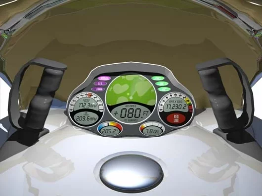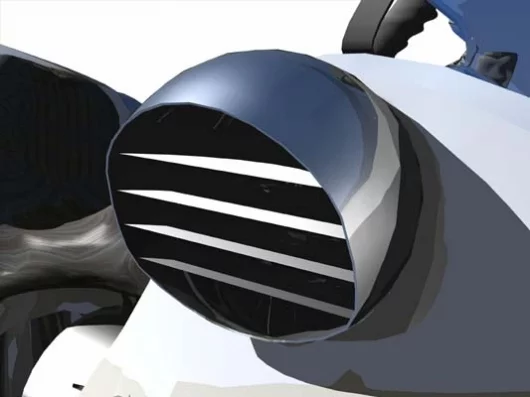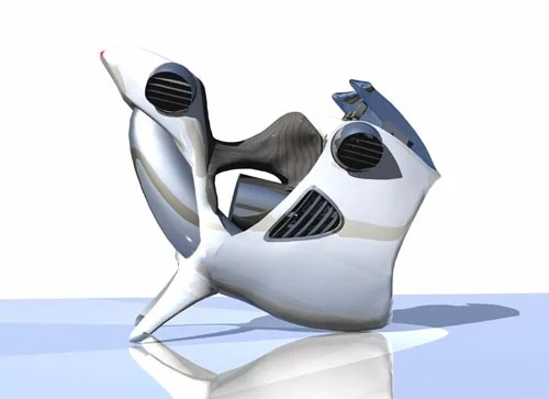 The AirBike concept uses vectored thrust generated by a pair of contra-rotating ducted fans that can be configured to produce forward or backward movement in both vertical and level flight. The rider sits astride the engine and helps control pitch and roll by shifting body weight as when riding a motorcycle. Stability is achieved by positioning the outlet nozzles well above the vehicle's centre of gravity. Instrumentation will include radar, G.P.S. or beacon tracking displays as well as tachometer, fuel gauges, altitude and air/surface speed indicators.