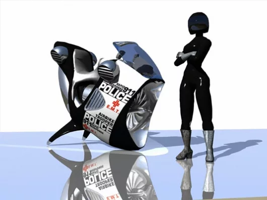 July 26, 2003 Swapping internal combustion for turbine power, Allied Aerotechnics is developing a VTOL (Vertical Take-off and Landing) motorcycle concept designed to access areas that are totally out of reach for any other type of vehicle.