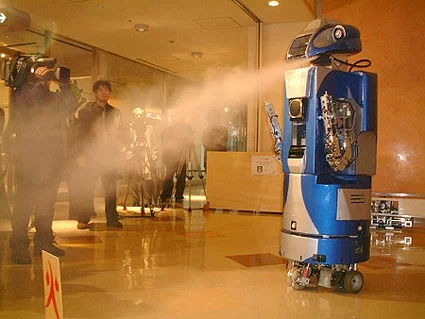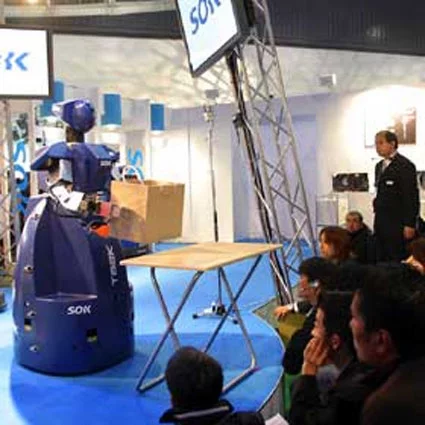 Updated May 2005 Whenever robots are discussed, it seems the name tmsuk comes up. The small Japanese robotics company has collaborated with some of the biggest names in electronics to produce commercial robots in the last few years, and their concepts always seem to be innovative and imaginative, not to mention very useful. tmsuk is best known for its security robots Banryu and Artemis, a semi-humanoid security guard for hospitals and office buildings) so when Japan’s National Research Institute of Fire and Disaster, strategised its next generation response to earthquakes and the fires they cause and decided it needed a robot for high risk situations, tmsuk got the call. Built for business, the strapping 3.5 metre Enryu will be called upon to rush into burning buildings, lift heavy objects and rescue people. Neat heh!