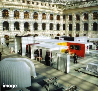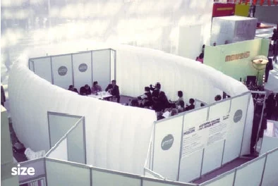 The exterior of the OIAB can be branded, and can also be adapted to hold display and presentation materials, making it an ideal and visually distinctive structure for exhibitions or meetings.