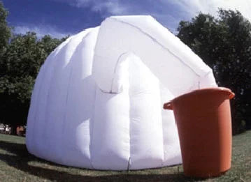 Now here's a clever design. Office in a Bucket is a portable, inflatable room which comes in a big wheelie bin. A fan in the bottom of the wheelie bin can inflate or deflate the room in eight minutes when plugged in to a standard electrical power outlet.