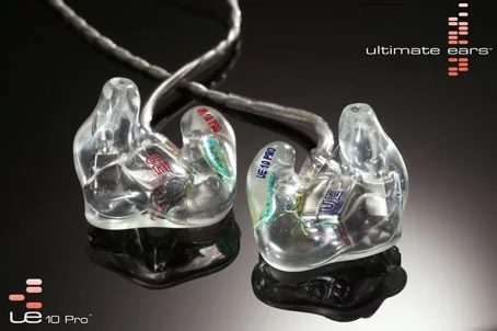 October 29, 2004 Ultimate Ears in-ear monitors are small, bi-amplified multi-armature speakers encased in a custom, comfortable, proprietary ear-mold. The products reduce external noise and preserve the entire frequency range of audio input, unlike off-the-shelf generic earpieces. At US $900 for the top of the line UE-10 Pro model (almost twice the price of a 40GB i-Pod) it may seem expensive for an earpiece, but Ultimate Ears are hand crafted for your ear from an imprint made by an audiologist and offer unparalleled sound quality backed up by a personalized frequency response measurement test.