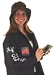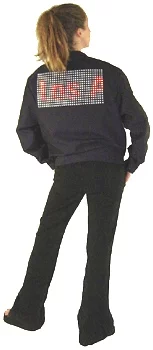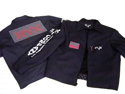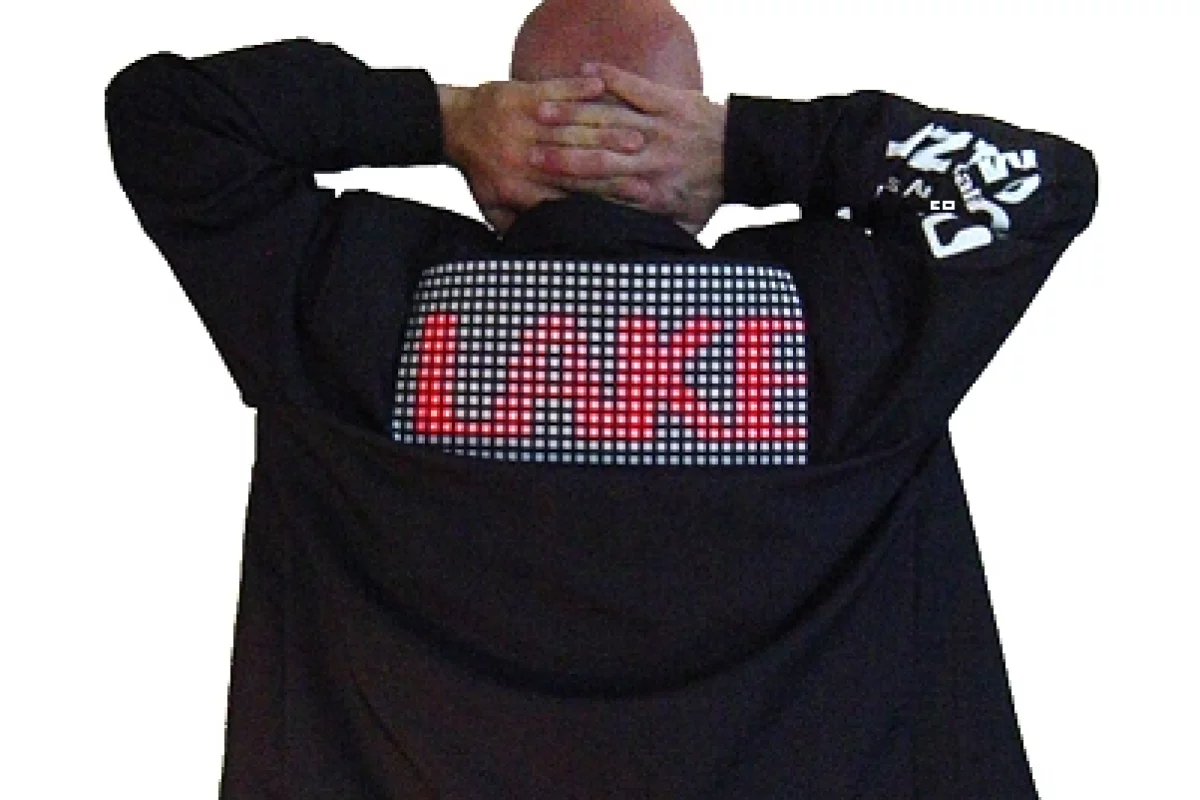 Los Angeles based Nyx clothing is launching a range of customised jackets with built-in flexible display screens that connect to a Palm OS PDA or smartphone such as the Treo or Kyocera, and can display the message of your choice on your clothes. The message and display is more than just a passive single message - the words can be scrolled, messages rotated and NYX also has a microphone-based sound-to-light feature that enables the clothing to synch its light and message pulsing with the beat of the music. Add some imagination to those capabilities and you could create an entirely new form of dancing and entertainment.