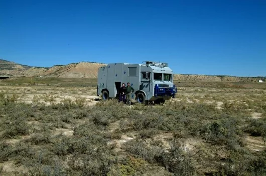 It's an expedition-class AWD motorhome. Shahn Torontow built the vehicle so his wife V.Ross Johnson and could still travel the wilderness after the former wildlife photographer became wheelchair dependent. A gift of love for his wife, he began with an OSHKOSH M1000 ARFF (AIRPORT FIRE RESCUE) and then spent thousands of hours crafting an extraordinary vehicle that offers complete luxury almost anywhere .
