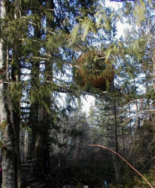One of Tom's goals is to "produce 10 spheres and hang them all in a large area of old growth forest as a spiritual retreat for myself and whoever else is interested."