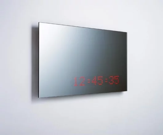 The mirror includes a scrolling LED message board sitting behind the mirror's surface. The SUCK LED Mirror offers all the basic information such as time and date, and you can also leave messages for your partner, other household members, etcetera.