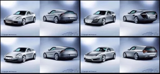 February 26, 2005 Swiss design company Protoscar has designed some very high profile concept cars, having been an integral part of the design of Rinspeed's radical show cars of the last five years such as the Splash, Senso, Bedouin, and Presto. This year, in addition to the Rinspeed Senso, the company will show a design concept of its own with some wonderful automotive heritage - a "Shooting brake" based on the Porsche 911 will be unveiled at the Geneva Motorshow, next week. The Shooting Brake concept evolved a century ago from European gentlemen wishing to have enough room for their guns when they were going hunting or to shooting contests yet at the same time drive their sports cars. A "shooting brake" is a modified two door coupe with an estate-wagon back crafted, rather than grafted on.