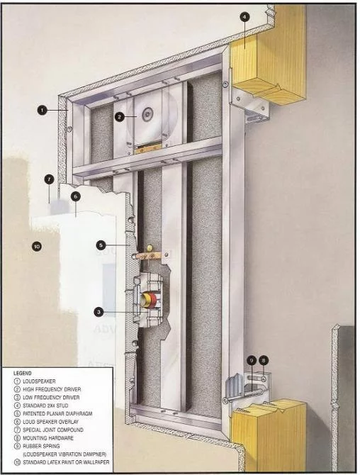 In contrast to the performance of traditional cone-type loudspeakers, which disperse sound narrowly throughout their listening environment in a tight pattern resembling that of a theatrical spotlight, Sound Advance Systems loudspeakers provide wide patterns of dispersion which cover the area in a floodlight-like fashion. The resulting performance offers clean, highly intelligible sound reinforcement in every corner of a room, not just directly beneath the loudspeaker, even in extremely off-axis areas. Once installed, the loudspeakers can be covered with any wall covering including latex paint, fabric, wallpaper, or any one of a number of textured finishes.