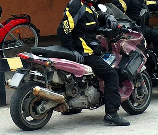 The motor is in fact from a concept bike developed by Piaggio R&D and shown at the 2003 EICMA Show in Milan. The Gilera Ferro concept bike is an advanced example of Piaggio Group R&D activity and married the Italian V-twin concept (as epitomised and made famous by Ducati, but more recently by Aprilia), with an electronic gearbox.