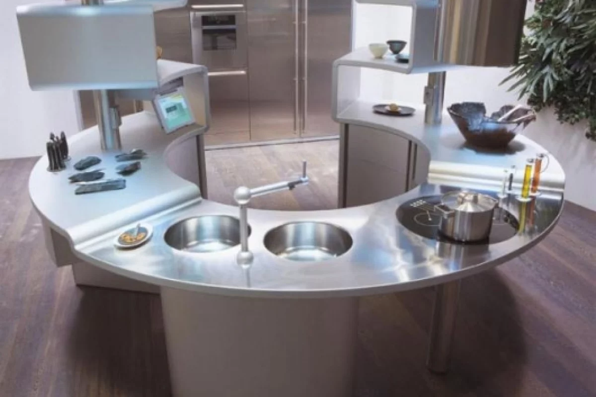 In 2002, Snaidero joined with celebrated Italian design studio Pininfarina to create such a design. The goal was to create a space that moved people; a space that became its own world... the sleek circular Acropolis was the result.
