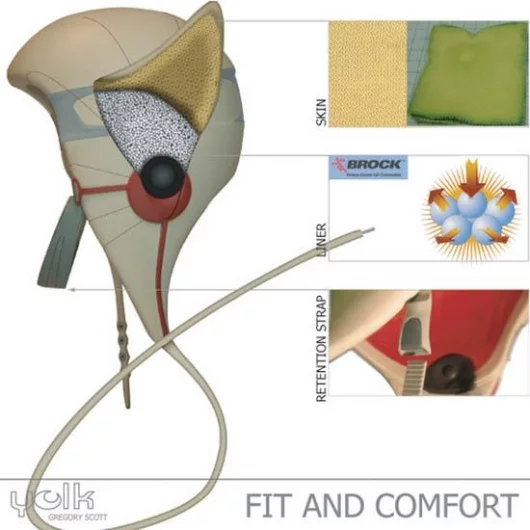 ‘Yolk’ can be fitted with of a choice of skins which can be stretched over the liner to match the user’s personal style. With similar safety standards across bike riding, inline skating, skateboarding, there are vast opportunities to develop different skins for these sports using the same liner.