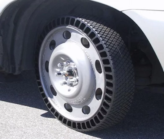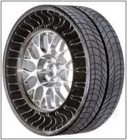 April 30, 2005 Michelin’s radical new Tweel announced in January this year looks set to be the next big thing in tyre technology but recent news from Amerityre on a very similar technology suggests there will be strong competition in the airless tyre market, as more than one manufacturer is close to market. Amerityre has successfully completed high-speed testing of its experimental non-pneumatic or “zero-pressure” polyurethane tyre in testing for FMVSS 129 compliance, the safety standard governing the testing of non-pneumatic car tyres. The advantages of the polyurethane tyre are many according to Amerityre including much cooler running temperatures (less wear), much lower rolling resistance (amounting to a reported 10% decrease in fuel consumption) and the ability to produce a complete tyre inside a few minutes significantly simplifying and reducing the cost of the manufacturing process.