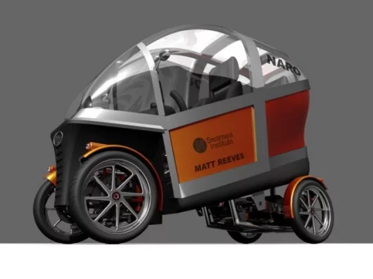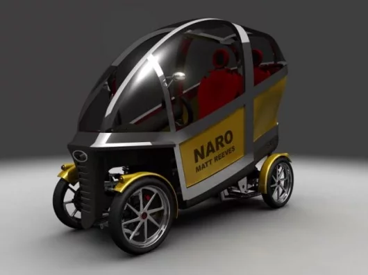UPDATED August 13, 2005 The NARO vehicle concept we featured in January is progressing and the company is currently undertaking extensive market research prior to the construction of prototypes at the same time as testing public reaction to several new styling themes for the executive commuter, taxi, and light van trade market segments. The NARO vehicle concept is a "free leaning" vehicle that improves the mobility of the commuter and addresses the key issues of congestion, pollution and parking scarcity in urban areas.