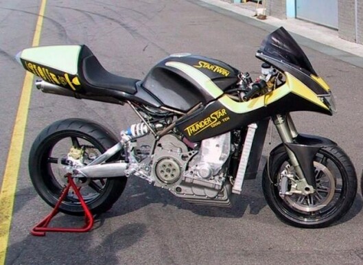 Van der Starre brought in Jeroen Bernart to create this motorcycle. He designed the motorcycle totally in 3D before starting to build it and by judicious use of lightweight parts and a frugal design, the THUNDER STAR 1200 TDI weighs just 205 kg, ready to ride.