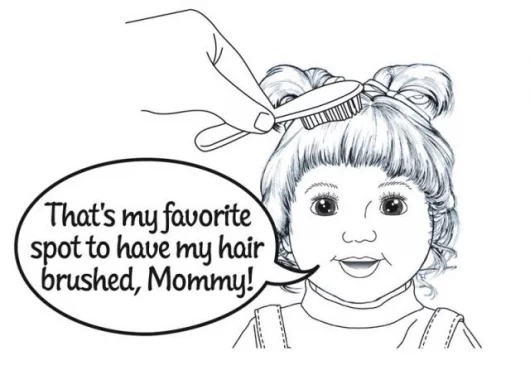 Amanda has seven areas where she senses the surroundings and responds appropriately – her right hand, her hair, her mouth, a microphone sensor (so she can “hear” those around her), a hug sensor on her chest, a “clothing sensor” (so she knows what clothes she is being dressed in) and a potty sensor. This yields a rich and diverse range of interactions for the five to ten year target audience.