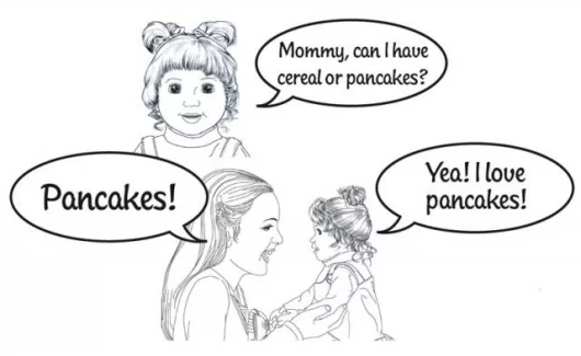 Amanda uses time to prompt various activities throughout the day: from the moment she wakes you up, she may ask you to feed her at breakfast time (anytime from 8am to 11am), or she might be hungry for lunch anytime from noon to 4pm. Dinner may be required any time from 5pm to midnight and in between meals, she may get hungry for a snack (anytime) or have to go potty (anytime).
