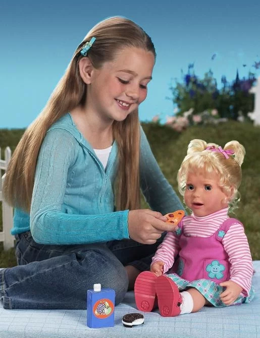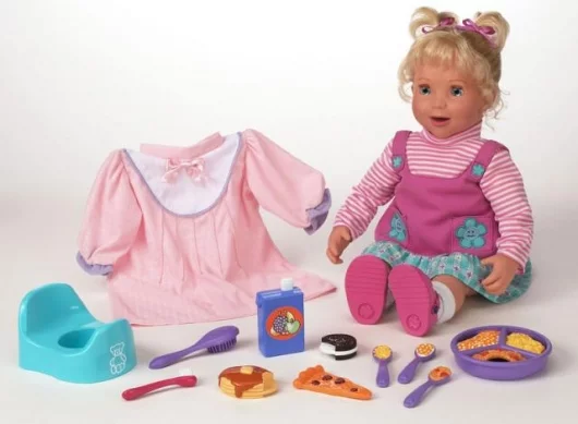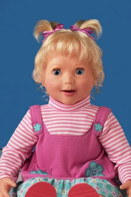 July 26, 2005 As computer chips get more powerful and cheaper at an exponential rate, we’re going to see toys, cars, shoes, hats and even door knobs becoming surprisingly intelligent. How intelligent? Meet Amazing Amanda. Amanda is a 21” interactive doll that utilises voice recognition, sensory technology and articulated animatronics, so she can play the role of a baby girl more authentically than you’d have thought possible. Like a real toddler, Amanda can show the whole gamut of human emotions including laughing and crying and after an initial five minute bonding session (AKA voice recognition induction session) she even recognises her own ‘mother’s’ voice and responds differently to mum compared with strangers! Amanda can talk, respond to questions and loves to play games and sing songs! She interacts with her food, potty and hair accessories, knows when she is being fed, having her hair brushed and can be programmed to wake at the same time every morning to act as a pseudo alarm clock. She remembers mothers day, birthdays and through realistic animatronics, shows her feelings in her facial movements and voice responses. Does this sound like science fiction? Amazing Amanda hits the shelves in the US, UK and Australia next month with a retail price in the vicinity of US$100.