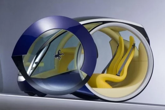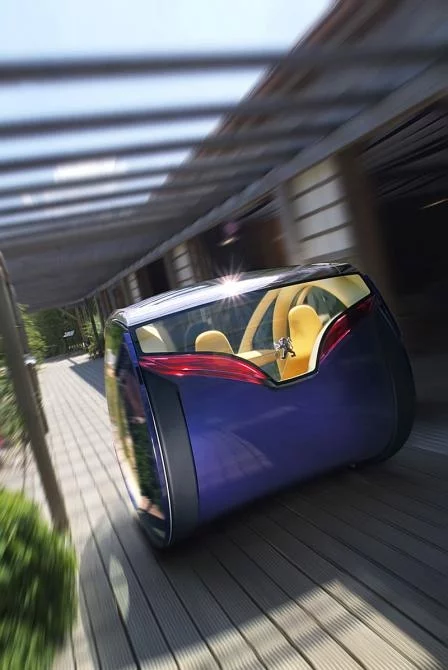 "The two big round doors slide along the side-front of the car to waste less space in small parking spaces, allowing a better exit at all times. The review mirrors fold up to avoid touching the doors during the side slide.