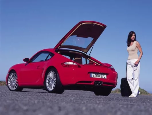 Capacity of the second luggage compartment at the front is 150 litres or 5.25 cu ft, as in the Boxster. In all, this gives the driver up to 410 litres or 14.35 cu ft of luggage space, the Cayman S thus offering not only supreme sportiness and performance, but also a new standard of all-round function and practical value.