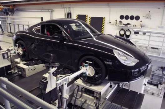 The chassis and suspension of the Cayman S is based on the same overall concept as the suspension of the Boxster S, but is far more sporting and dynamic in its overall set-up. This specific configuration in conjunction with the very strong, torsionally and flexurally-resistant bodyshell gives the Cayman S a new standard of driving behaviour and sports handling ne-ver seen before – sporting performance with superior safety reserves, but without neglec-ting driving comfort in any way.