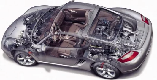Power transmission in the Cayman S is provided by a six-speed manual gearbox ensuring a precise and ultra-short gearshift. Tiptronic S automatic transmission comes as an option, the five-speed automatic transmission unit in this two-seater Sports Coupé boasting new hydraulic and electronic management with all the benefits of the variable gearshift programs carried over from the Carrera.