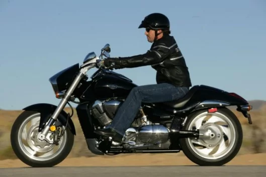 October 11, 2005 The Suzuki M109 is intended for the power cruiser marketplace – the market begun and dominated by Harley Davidson that has attracted competitors from Honda, Yamaha, Suzuki, Kawasaki and latterly, the only truly original contender in the field since the Harley itself, Triumph. In this market, brutal torque is the currency, so bigger is better when it comes to engine size and the original Harley V-twins which seemed ginormous at 1280cc have been trumped and countertrumped all the way to 1700cc by Yamaha, 1800cc by Honda and 2000cc by Kawasaki – the largest V-twin motorcycle engine in the world. Then there’s Triumph’s 2300cc Rocket III, but that’s another story entirely. Currently, the Suzuki is the runt of the pack with a capacity of 1.6 litres, but quite soon we’ll see a newer, meaner and much higher revving Suzuki contender – the M109 gets its name from the cubic inches it packs – 109 of them.