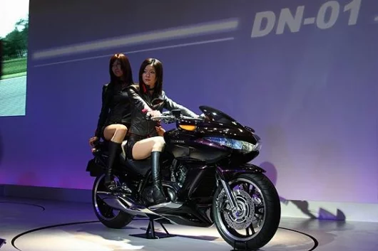 October 24, 2005 One of the surprises of the 39th Tokyo Motor Show 2005 which opened on saturday was Honda's showing of a large-size sports motorcycle concept model dubbed the DN-01. The motorcycle is equipped with a continuously variable automatic transmission (CVT) and a water-cooled, 4-stroke, OHC, V-twin, 2-cylinder, 680cc engine. Most significantly, Honda stated that it "will continue the development of DN-01 with the goal of introducing it to the market in the near future."