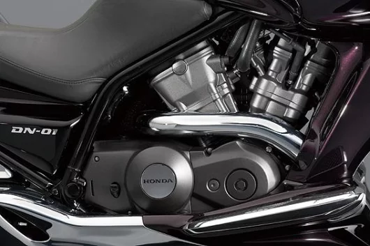 Moreover, this is the first hydraulic mechanical continuously variable transmission system in the world to be equipped with a lock-up mechanism, which improves the fuel efficiency while offering a smooth ride without feeling the shock normally associated with gear shifts, even when cornering. With the HFT, the DN-01 achieves more easy-to-operate and comfortable riding than currently available sports model motorcycles.