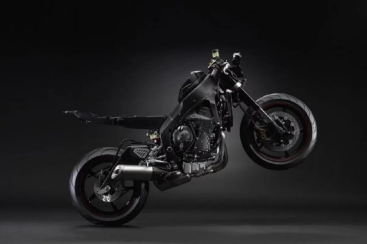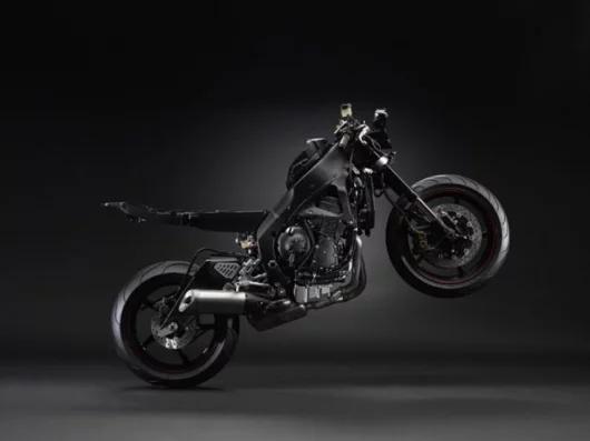 1) New Deltabox frameA newly designed Deltabox aluminum frame has been adopted. Engine placement has been optimized thanks to the know-how gained from the MotoGP machine YZR-M1, optimization of the vertical, horizontal and torsional rigidity balance of the frame, including the rear arm, provides linear, sporty handling performance.