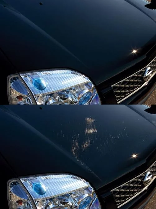 The water-repellent paint also has a higher resistance to scratches compared with conventional clear paints. A vehicle painted with “Scratch Guard Coat” will have only one-fifth the abrasions caused by a car-washing machine compared with a car covered with conventional clear paint. Scratches from car-washing machines account for the majority of scratches to painted car surfaces.