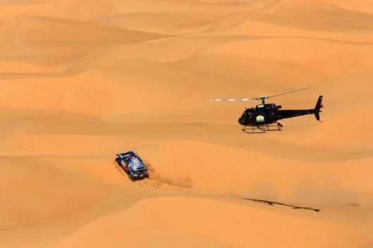 The pair had led team mates Luc Alphand and Gilles Picard by a mere 32 seconds at the start of what promised to the hardest day of the entire event and had already edged over two and a half minutes further away from their nearest rival Giniel de Villiers after the first passage control at 97 kms.