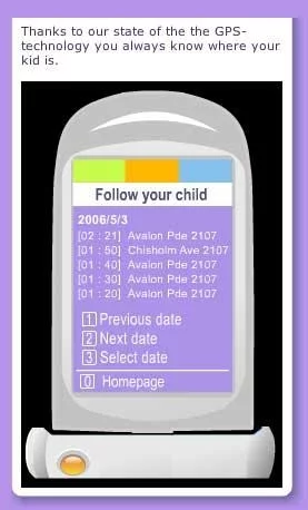 April 5, 2006 i-Kids is a new ‘pre-teen’ mobile handset with GPS (Global Positioning System) functionality that has been designed to meet the needs of parents with children in primary school at the same time as enabling children to go out and play confidently with the perception of independence. Unlike other mobile phones, the handset can only dial four numbers and does not include SMS functionality, which means that parents can control and minimise usage. Most importantly, the phone can alert parents when a child moves out of a predetermined ‘safety zone’, such as their school or the local park, and parents can check a child’s location at anytime on a computer based map or on their WAP capable mobile phone. The i-Kids phone can even be located when it is turned off, meaning that parents can always find their child’s location. Plans are underway to diversify the range of the service by applying 'i-Kids' service's mobile security functions (location inquiry) to boats, automobiles, motorcycles, or any other valuable item.