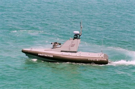 With integrated navigational sensors including GPS, navigation radar and video cameras, the Protector can conduct harbor surveillance even in busy waterways. The system is operational in real threat environments in the Persian Gulf and Mediterranean and has proven the ability to provide remote detection, interrogation and engagement of potential threats to merchant vessels or naval ships.